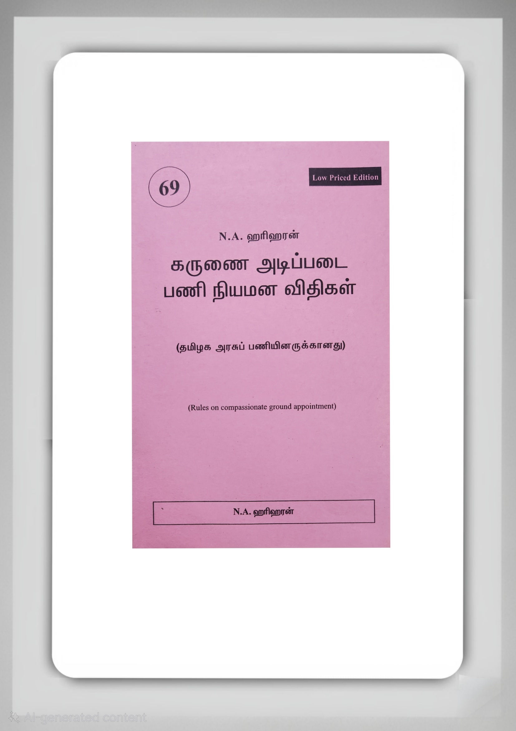 BUY கருணை அடிப்படையிலான பணி நியமன விதிகள் ஹரிஹரன்| BOOK NO 69 | Compassionate Appointment Rules TAMIL HARIHARAN | N A HARIHARAN | BEST GOVERNMENT DEPARMENTAL EXAM BOOK | BEST BOOK FOR GOVERNMENT PROMOTION EXAM | SAMIROO PUBLISHERS |